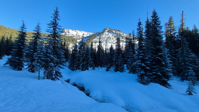 We walked across Highway 2 to start the trip. The Yodelin parking area is about 1.6 miles east of Stevens Pass summit.