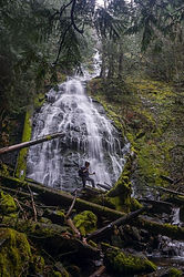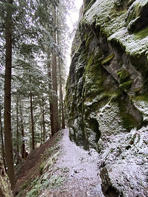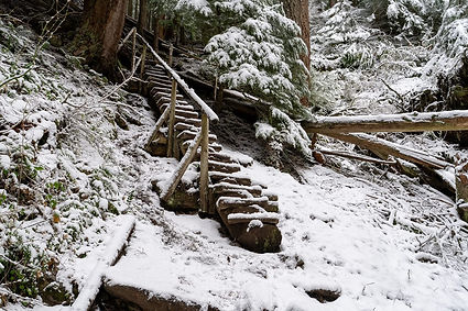 Here's a trail on the way to Crystal Mountain that I've never offered before. Not sure why not, because it's an excellent (but steep) winter hike or snowshoe tour. Starting from a pullout on Highway 410 past Greenwater, the trail climbs a quick 1000 feet to reach a forested plateau with lots of old growth. Continuing on, you can reach an overlook of the White River valley at 1.5 miles, and another overlook at 2.7 miles. Mount Rainier is visible if it's clear enough. The trail also features a couple of waterfalls on Dalles Creek, and is a great alternative to the crowded Crystal Mountain area. Note that the snow depth varies a lot here, so it could be a hike on little or no snow, or could be a snowshoe trip. Our exact distance and elevation gain will depend on the conditions. Remember to sign up for a snowshoe rental if you need snowshoes.